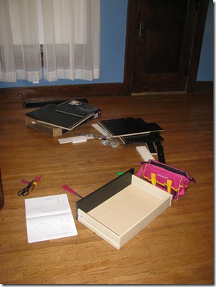 I was pretty excited to get our my new pink tool set from hubby and put together my new table. hehe